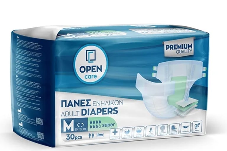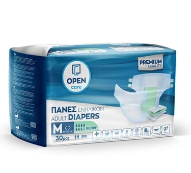 Η πάνα ενηλίκων Open Care, αποτελεί μέρος της Premium σειράς προϊόντων ακράτειας Open Care. Είναι ειδικά σχεδιασμένες για την ακράτεια, απορροφούν αποτελεσματικά την υγρασία και προσφέρουν άνεση και προστασία που διαρκεί.