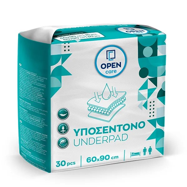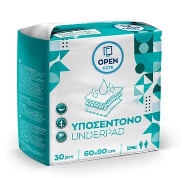 Τα νέα υπεραπορροφητικά υποσέντονα Open Care με την extra απαλή και ανθεκτική τους σύνθεση προστατεύουν την επιδερμίδα από υγρασία και ερεθισμούς και εξασφαλίζουν την ευχάριστη διαμονή στο κρεβάτι ακόμη και σε περίπτωση κατάκλισης. Η αδιάβροχη επένδυση αλλά και το extra απορροφητικό εσωτερικό στρώμα χαρτόμαζας επιτρέπουν τη μεγαλύτερη δυνατή απορρόφηση υγρών. Τα νέα υποσέντονα Open Care διατίθενται σε 2 διαφορετικές συσκευασίες.