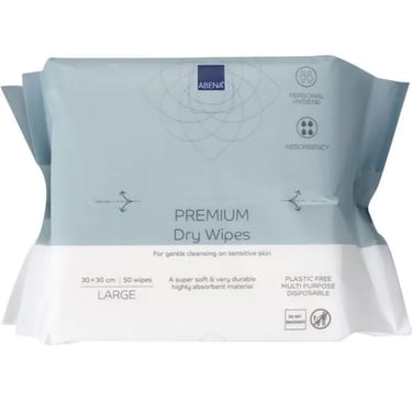 Τα στεγνά μαντήλια ABENA Dry Wipes Premium με την απαλή τους σύνθεση, είναι κατάλληλα για τον απαλό καθαρισμό της ευαίσθητης επιδερμίδας. Αποτελούμενα από 100% βισκόζη.