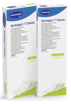 Επίθεμα παρασκευάζεται από φυσικές ίνες με προέλευση από φύκια. Το αλγινικό υλικό απορροφά τα εξιδρώματα του τραύματος και σχηματίζει μια επικάλυψη που μοιάζει με τζελ πάνω από το τραύμα, διατηρώντας ένα υγρό περιβάλλον επούλωσης του τραύματος που επιταχύνει τη διαδικασία επούλωσης και βοηθά στην ανάσχεση της αιμορραγίας.